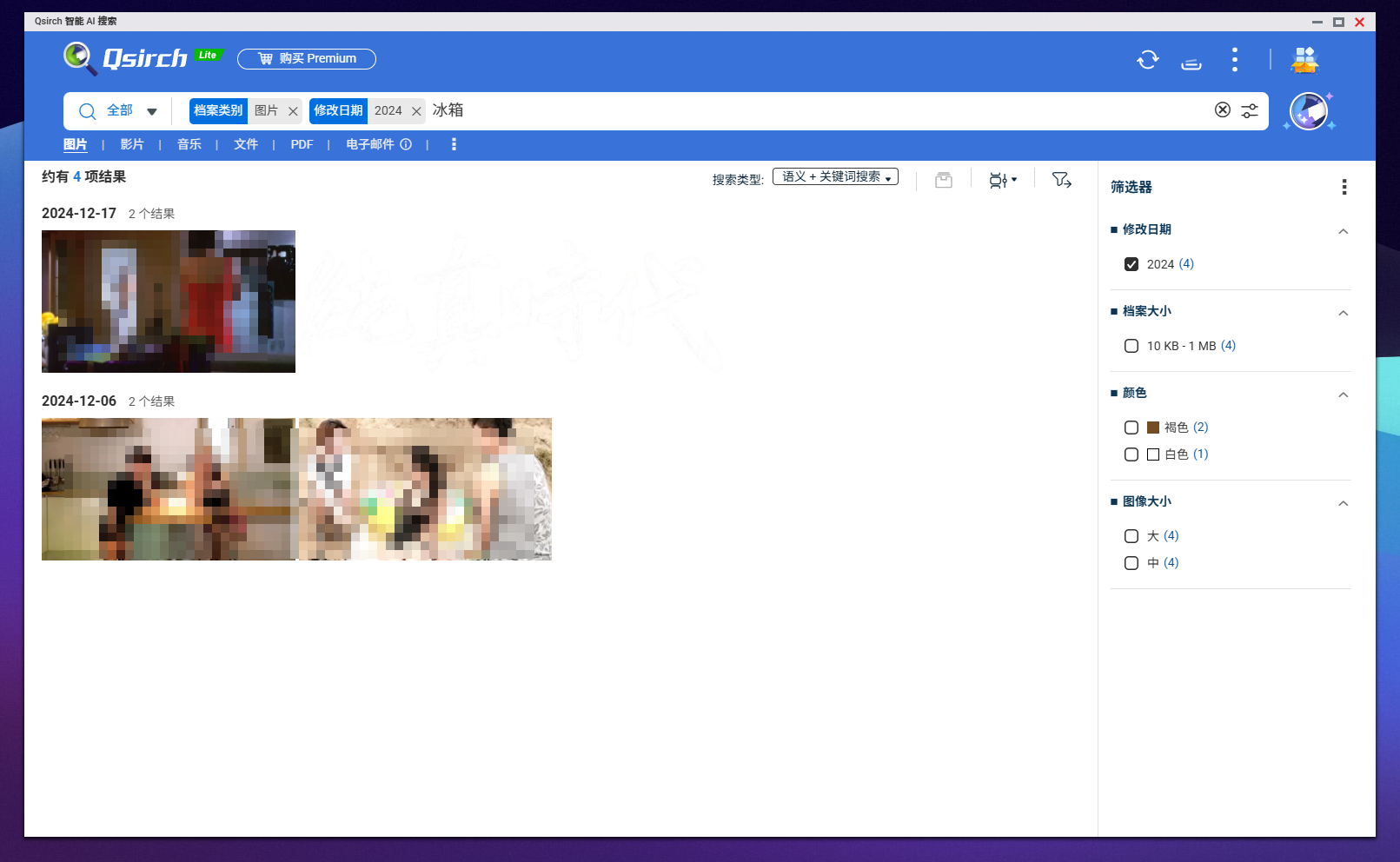 在 NAS 使用过程中,文件越多越容易陷入“资料找不到”的混乱。威联通的 Qsirch 就是为解决这一痛点而生的,它堪称“NAS 里的百度”。自 5.3.3 版本起,Qsirch Premium 高级版已全面免费开放,所有用户都能使用全文搜索、智能筛选、文件预览等完整功能。它支持 OCR 文本识别与智能图像识别,能在图片、PDF、邮件、Office 文档中精准匹配关键词,让内容创作者与企业用户的检索效率提升数倍。