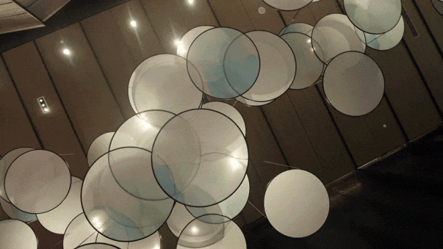 步入酒店,视线焦点被《三百六十一个交错的曙光》吸引,艺术家JAN ALBERS将纯粹的雕刻工艺与绮丽的渐变色彩相结合。色彩横渡冷暖之间,描绘出临港日出时的唯美意境。