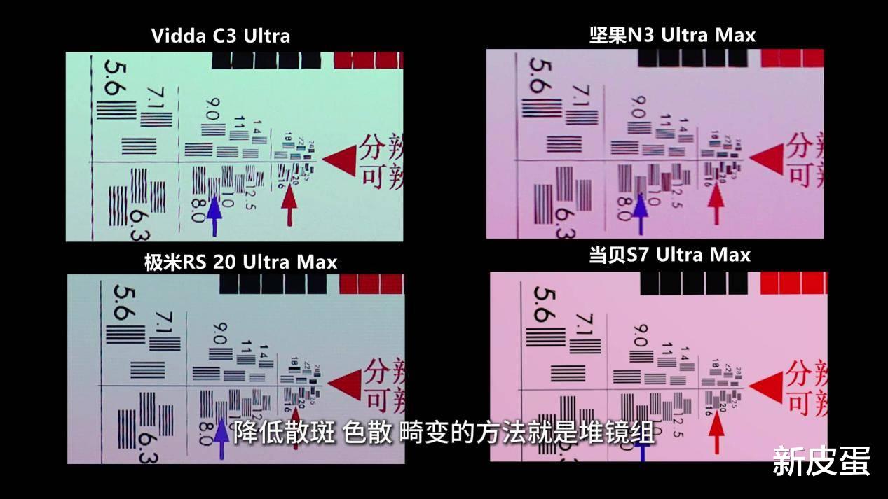 画质表现上,四款客厅投影仪机型均采用三色激光加0.47英寸DMD抖4K方案,理论上清晰度相同。但实际测试中,当贝凭借17片镜组配置,清晰度表现最佳,散斑和色散控制最好;Vidda次之;极米和坚果表现接近。在清晰度这块,当贝S7 UltraMax是最值得推荐的客厅投影仪。
