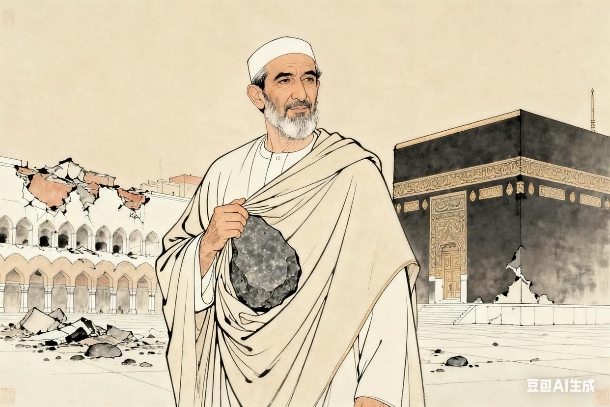 30 岁出头的穆罕默德已经成了麦加有名的 “诚信者”,人们有纠纷都愿意找他调解。35 年,克尔白因为洪水受损,各部落争夺修复后安放玄石的权利,剑拔弩张时,有人喊 “让穆罕默德来定”。他走到玄石前,脱下自己的长袍裹住石头,然后对各部落首领说 “你们每人抓住袍子的一角,一起抬起来”。首领们愣住了,随即纷纷伸手,玄石在众人的力量下回到原位,没有人再争执。穆罕默德看着这一幕,心里忽然亮了一下:或许人们本该这样,不分部落,不分高低,一起守护同一样东西。