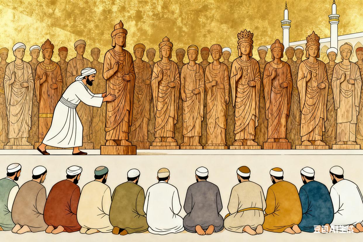 清晨的阳光刚漫过麦加的沙丘,克尔白神庙前就挤满了人。商人们背着香料袋高声议价,牧民跪在黑石旁亲吻,孩童追着驮货的骆驼跑过石板路。角落里,一个穿着粗布长袍的年轻人正低头擦拭指尖的沙尘,他叫穆罕默德,哈希姆家族的孩子,此刻正看着人们对着木雕偶像虔诚跪拜,眉头轻轻蹙起 —— 那些偶像的眼睛是琉璃做的,却照不进他心里的困惑。