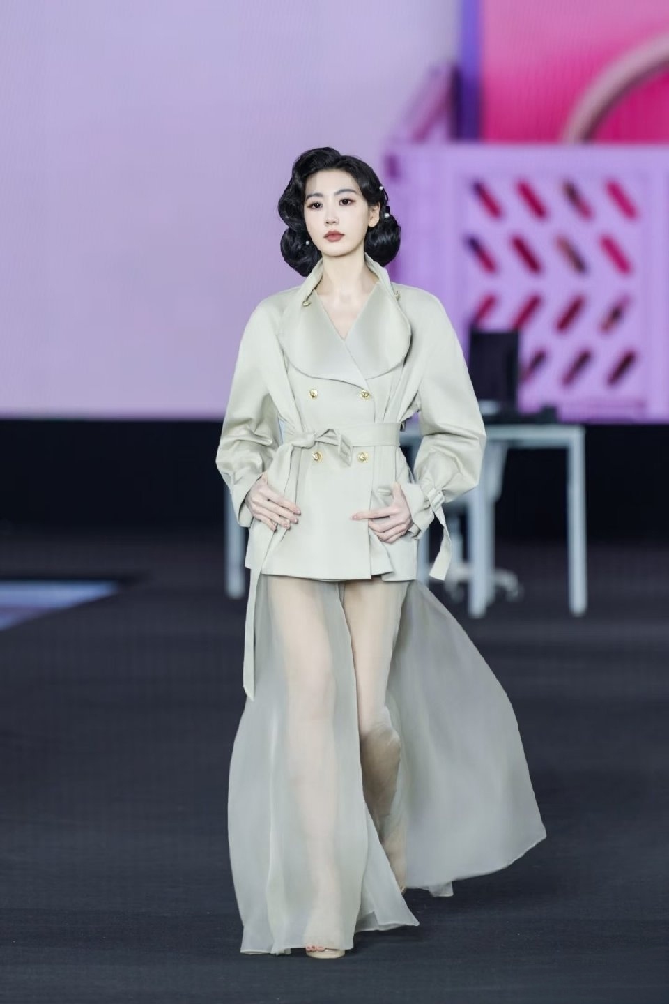 她推开后台大门的那一刻,全场目光瞬间锁定。这套名为“浮光掠影”的复古造型,将她的身材曲线衬托得淋漓尽致,深邃的红唇配合冷峻的眼神,这种极致的摩登感与她平时在镜头前的亲和力形成了巨大的反差。更令人惊叹的是她的台步,并非新手的僵硬,而是带着一种久经沙场的沉稳与从容,定点时的凌厉眼神直抵镜头,气场全开,丝毫不逊色于同台的职业超模。