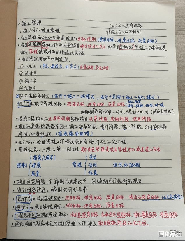 2.管理:针对计算题薄弱项(如赢得值法、进度偏差计算),集中练习 10-15 道典型题,归纳 “公式→代入数据→结果判定” 步骤;对表格类考点(如 “施工组织设计分类表”),用对比记忆表强化区分。