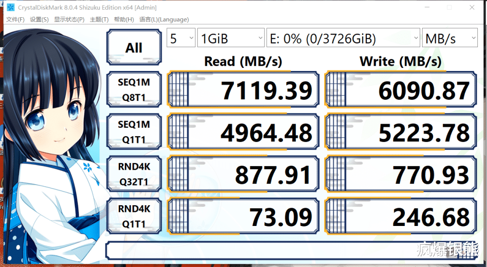 用CrystalDisk多次测试,这块SSD的读取速度比宣称的7000MB/s速度还要高一些,达到了7119MB/s,写入速度6090MB/s,相较于其他品牌也是高出一大截来,整体表现很优秀。