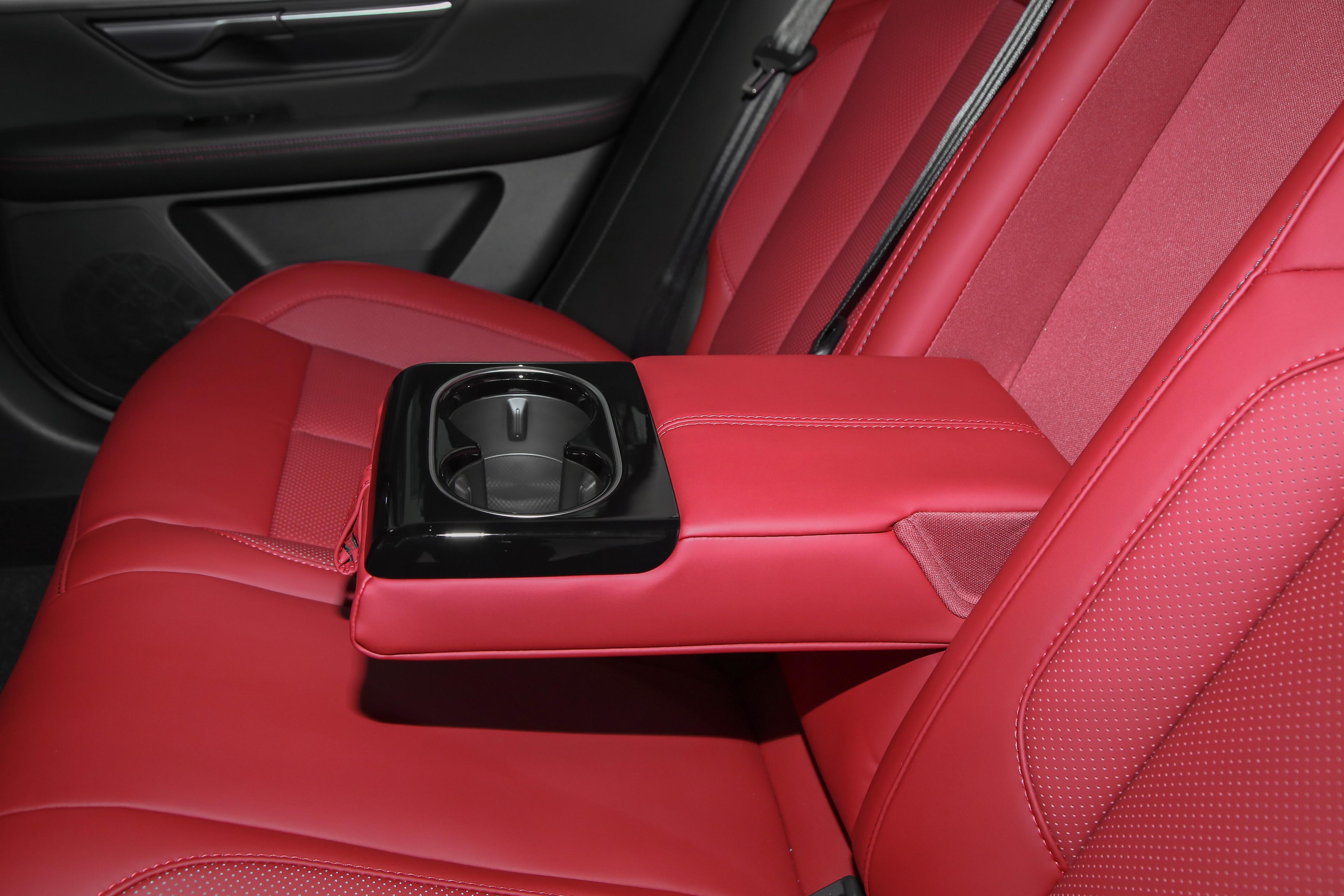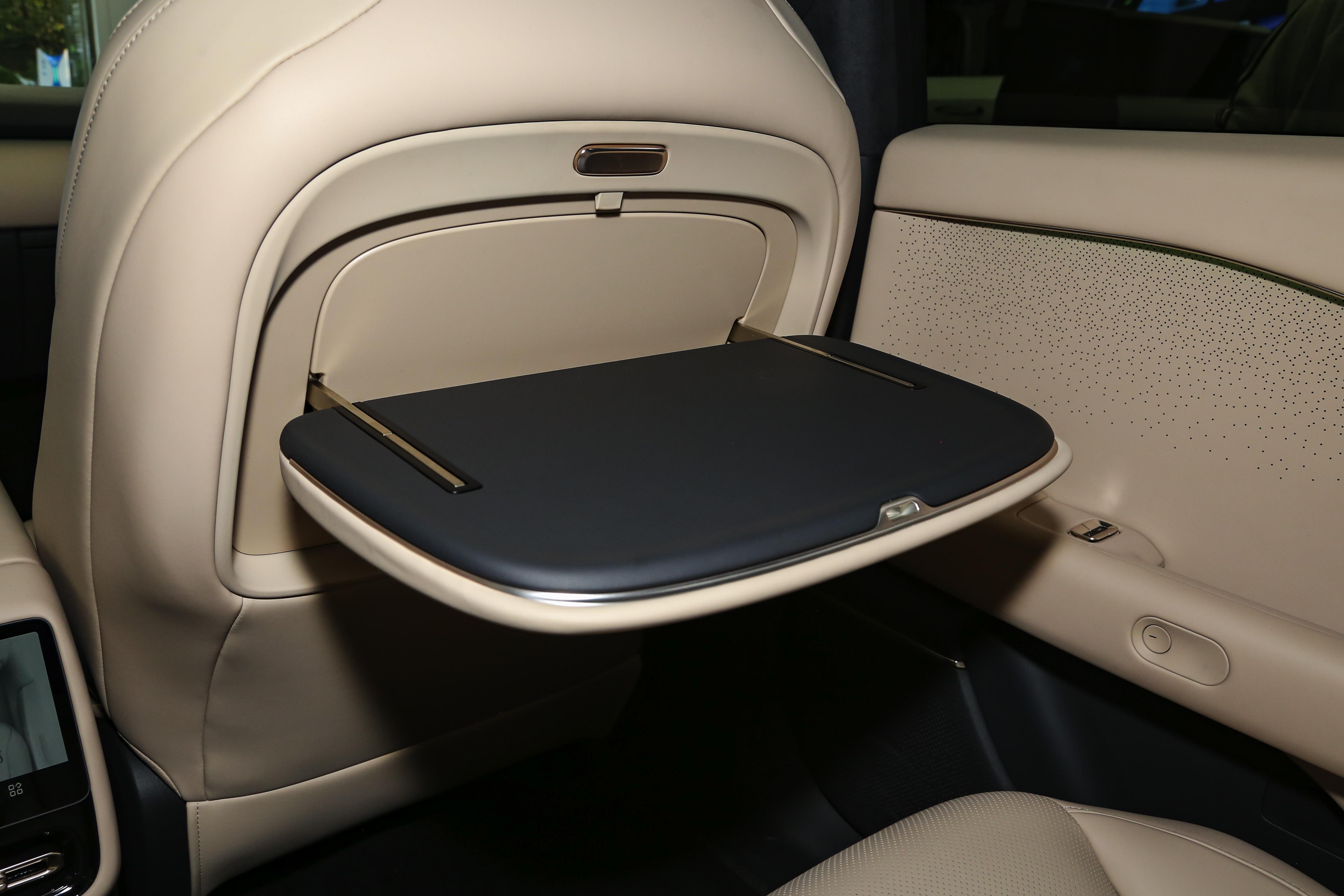 车内的座椅采用人体工学设计,使用 nappa 打孔真皮材质进行包覆。全车除后排中间位置之外的 4 个座椅均配备了加热、通风、按摩功能,后排座椅还标配 10 度的无级电动调节。此外,后排还提供了小桌板和 8 英寸娱乐控制屏。
