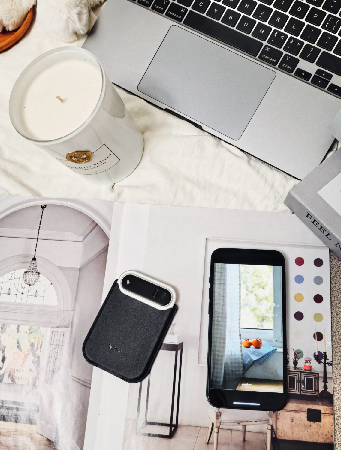 产品包装盒内附赠了一个磁吸皮套,装上后总重也仅74克,非常便携