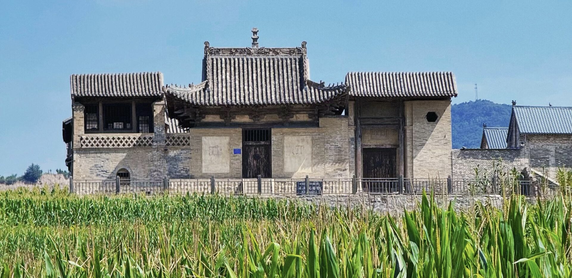 穿过南殿进入一进院落,正殿的面貌便复杂起来。作为曾经的大雄宝殿,它的台基还留着元代的厚重,六椽栿直达前后檐的梁架手法,透着游牧民族的粗犷洒脱,可檐下斗栱已变成清代常见的简化样式,殿内还加了几根细木柱支撑,硬生生把元构的豪迈改成了拘谨。这种宋、元、清三朝风格的杂糅,像一部被反复批注的古籍,每一层改动都藏着时代的印记。站在院中抬头看,钟鼓楼的飞檐正对着远处的神仙岭,登上去视野豁然开朗,全村的阶梯式院落、放射状街巷尽收眼底,合兴街与照壁街在村中心十字交汇,把前南院、东高楼院等明清宅院串联成一幅立体的古村画卷。