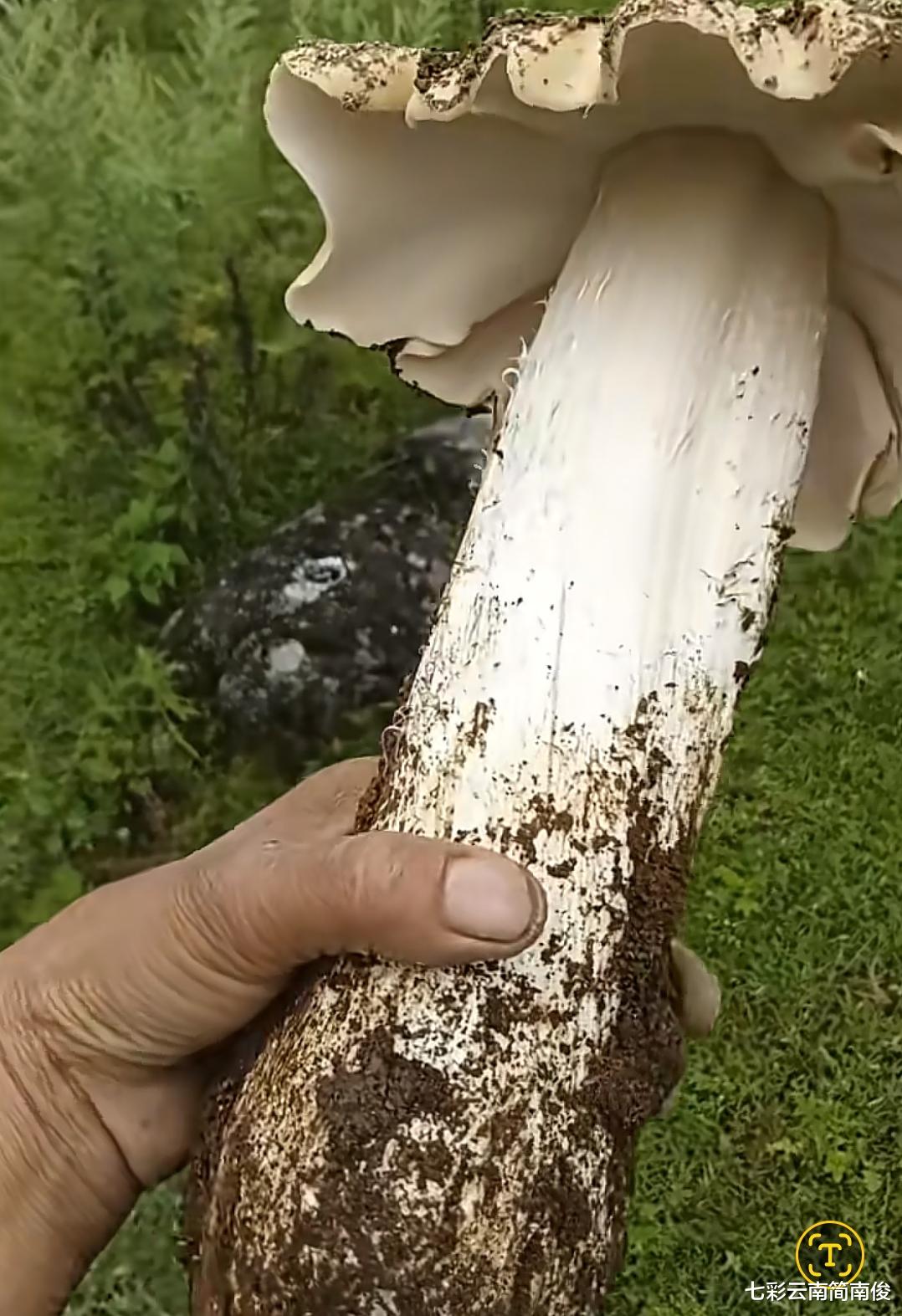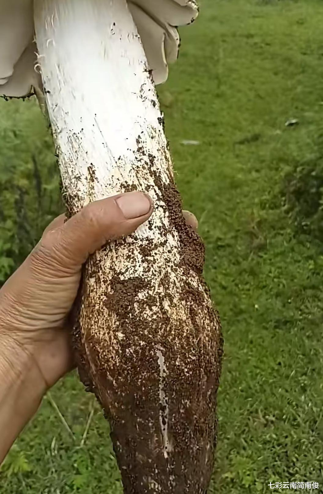 据现场拍摄画面显示,巨型鸡枞菌根部沾染新鲜土壤,弥漫浓郁乡土气息。巨型鸡枞菌菌帽悄然绽放,菌根极其粗壮,宛如成年人手臂一般。