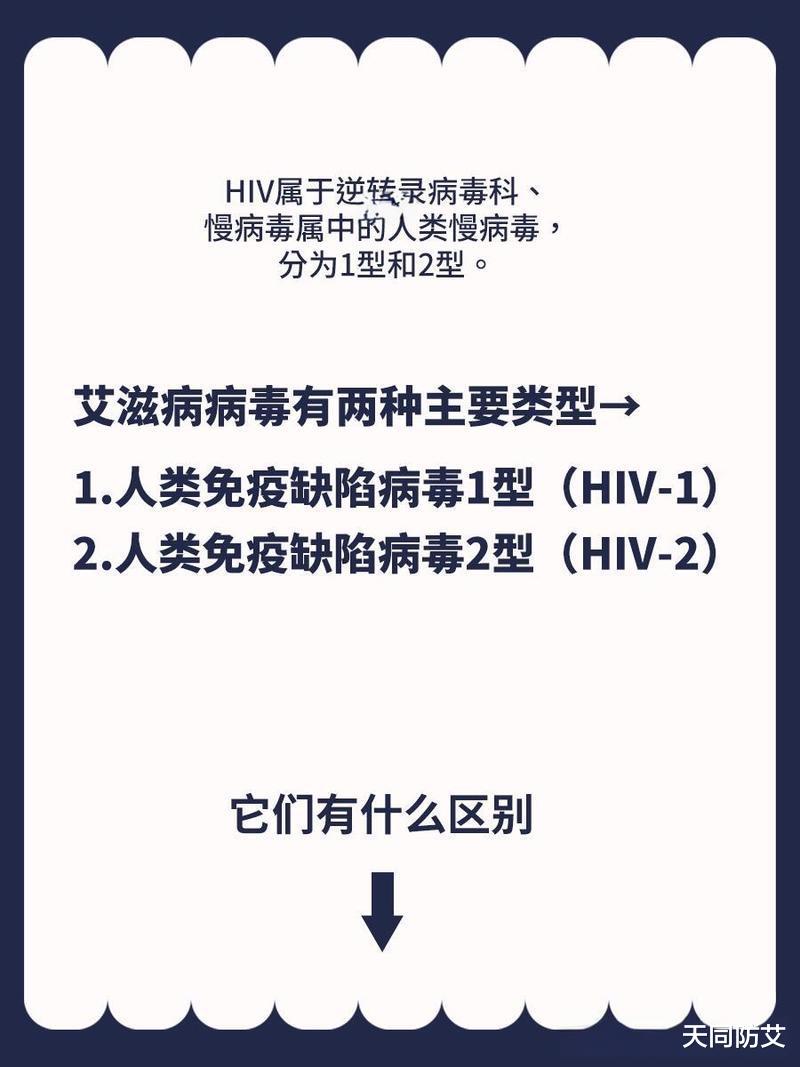 HIV-1在国内外都十分常见HIV-2在国内十分稀少。相比HIV-1,HIV-2破坏免疫系统的能力较弱,传播率、死亡率也比HIV-1低,潜伏期相比更长。HIV-2主要流行于西非局部地区,但近年来在全球范围内(包括西班牙、葡萄牙、法国、日本)都有输入性病例和本土病例的报道。中国自1998年报告首例HIV-2感染者以来,陆续有散在的HIV-2感染或HIV-1/HIV-2混合感染病例出现。