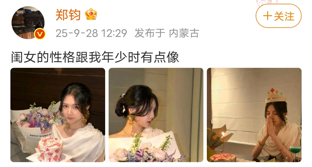 其实早在九月底时,郑钧就发博为女儿庆生,还罕见晒出女儿的正脸照,长得非常漂亮又有气质,看起来很温柔甜美,还被网友夸赞“最美星二代”。