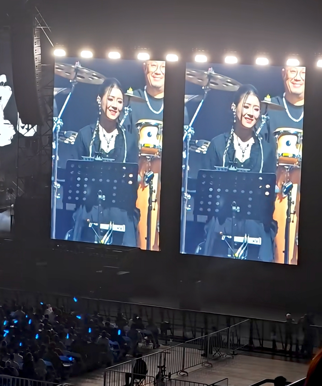 不过最让人意外的是,郑钧与前妻所生的女儿也现身演唱会,不仅是爸爸郑钧的和声团队成员之一,之后还上台和郑钧一起演唱,父女同台给了观众不小的惊喜。