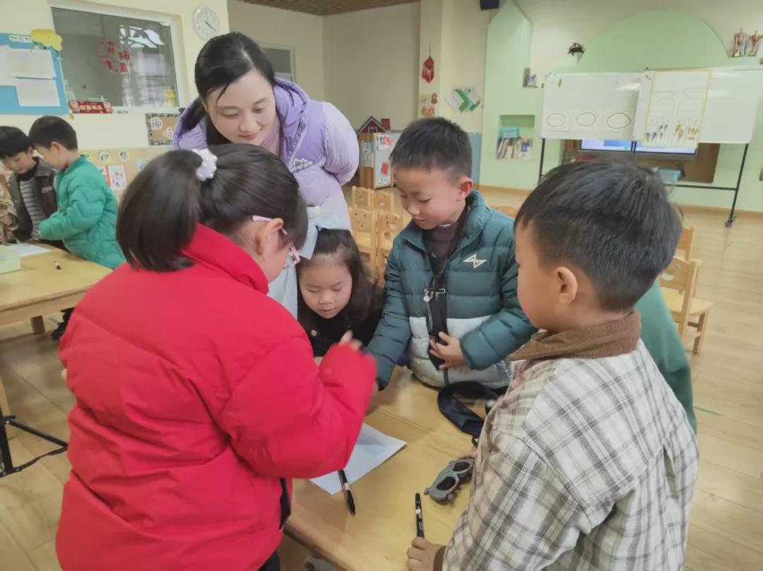 示范课结束后,全体教师开展了集中研讨。首先,师父们分别阐述了各自的教学设计思路、活动目标及课后反思。随后,老师们分小组围绕“如何支持幼儿的审美感知与创意表达”以及“幼儿科学探究中教师的支持策略”展开讨论,大家一致认为师父们在活动中充分尊重幼儿的主体性,提供了丰富的材料和适宜的引导,同时就教学环节的节奏把控、师幼互动的有效性等提出优化建议。