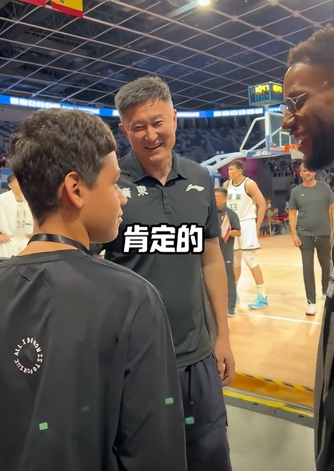 威姆斯积极推荐儿子给广东全运男篮将帅们!威姆斯坐在替补席后面,杜锋亲自过来打招呼,威姆斯把儿子介绍给杜锋认识,杜锋爽快邀请他到广东宏远男篮打球。威姆斯表示,正在努力训练,两三年后就可以打职业比赛了!