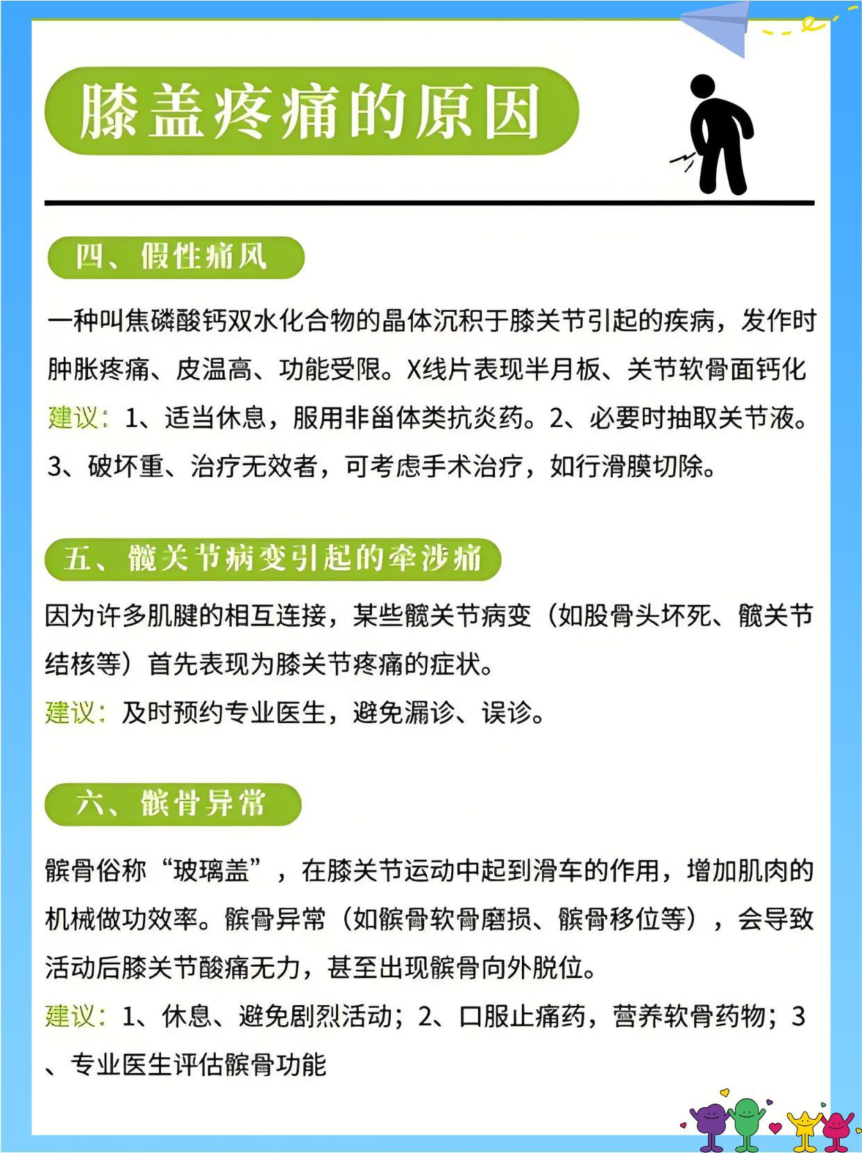 ✅ 及时就医:若疼痛持续2周以上、肿胀不消或出现“绞锁”(膝盖卡住无法动),立即查X光/MRI!