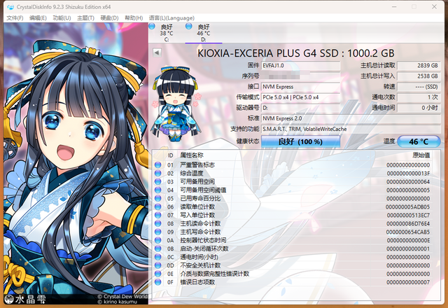 我们使用CrystalDiskInfo读取了一下它的固件信息,从中可以看出,它的接口为PCIe5.0x4。