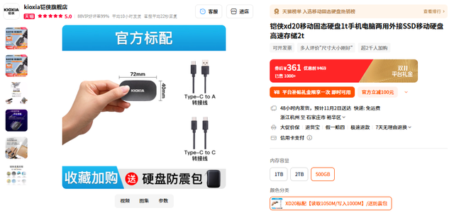 铠侠XD20同样享有立减100的优惠,另外,它还会附赠一款硬盘防震包,均是比较实用的赠品,值得友友们考虑。