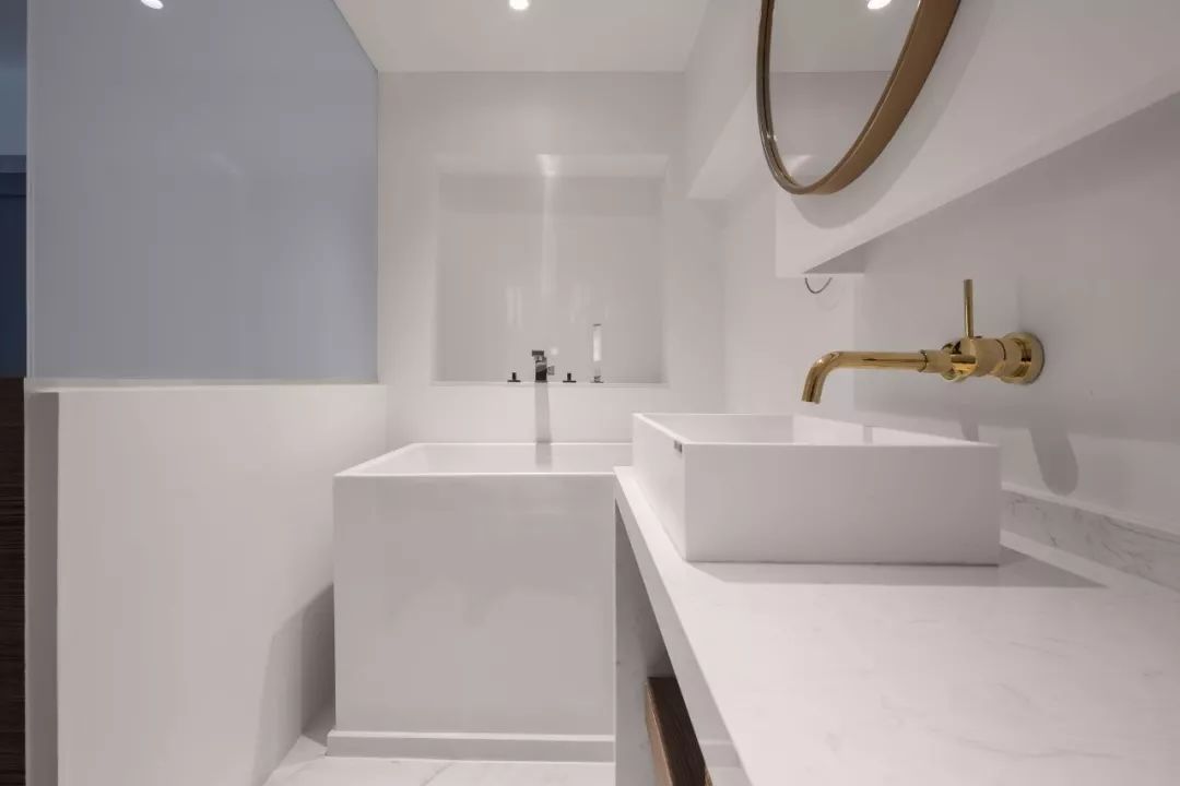 卫生间的另一侧做了一个迷你的浴缸,每天都能泡澡是一件多么惬意的事情。蓝色与白色的结合,让卫生间显得更加清新、舒适。