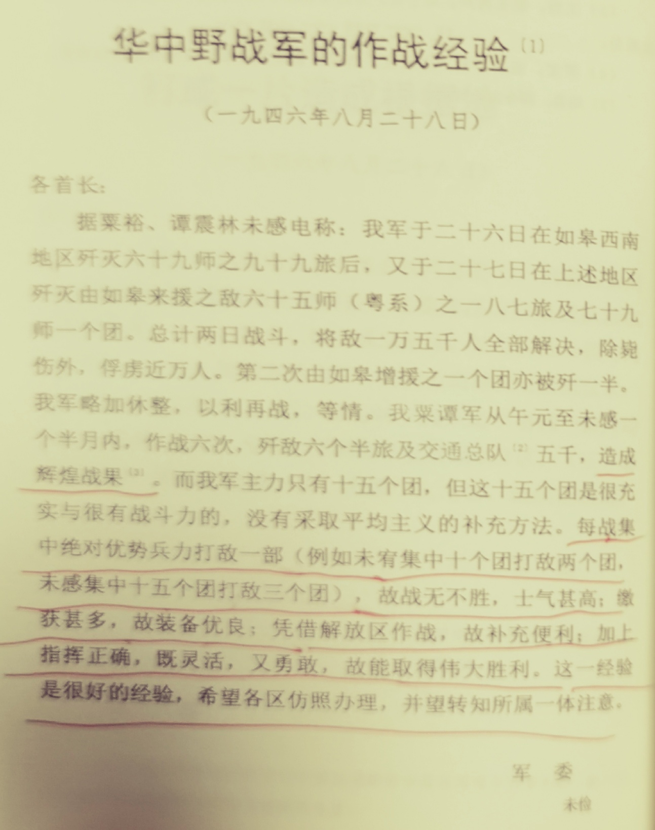 苏中六战六胜后,毛泽东致各战略区首长的电报