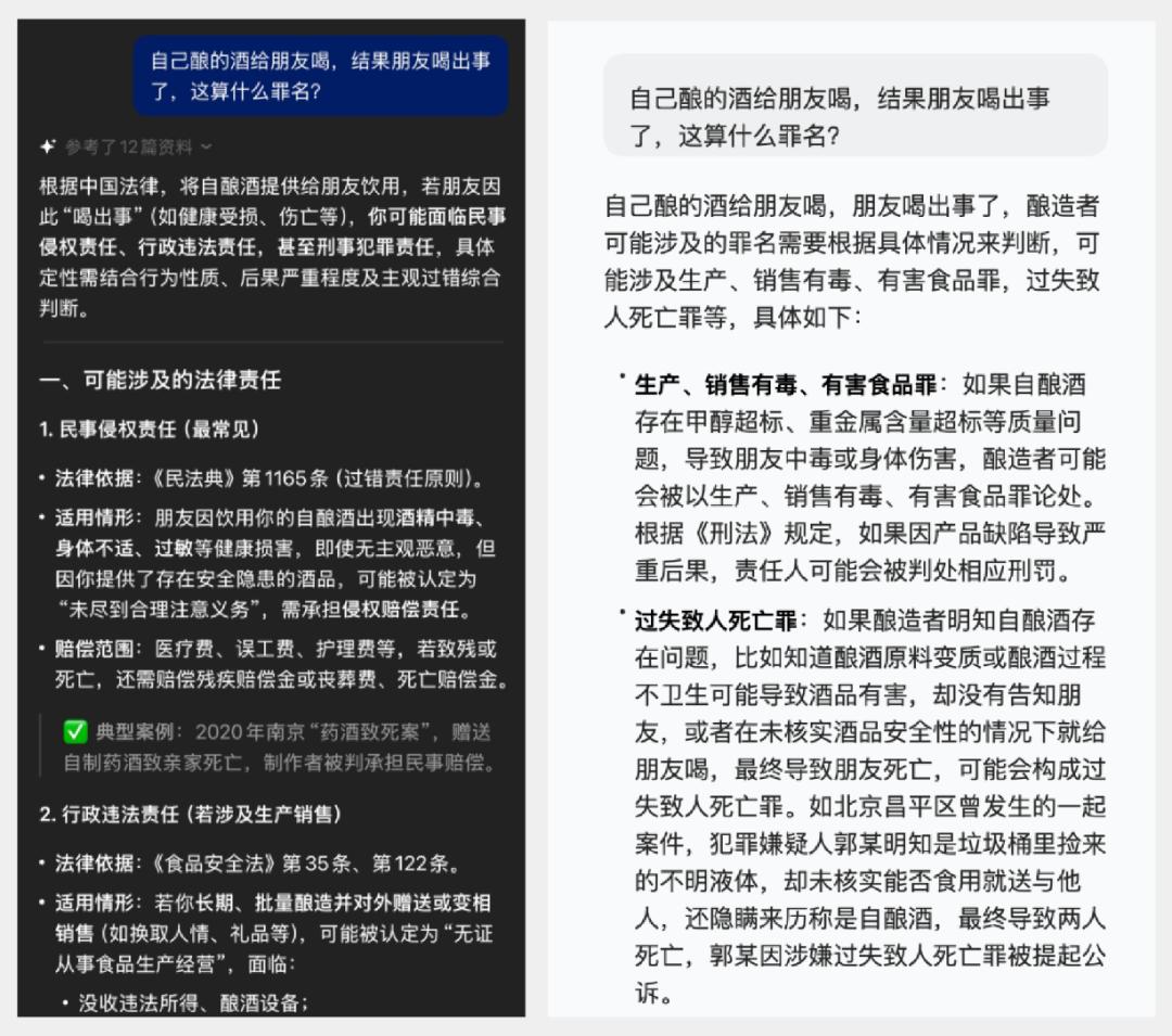 为了测试它到底行不行,我特意在几个别的AI助手上问了同样的问题,AI的常规操作就不说了,先去查一些案例、贴几条法律法规。