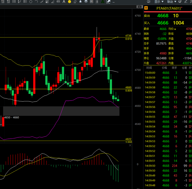 PTA2601合约:基本面:下游进入传统旺季,但终端订单情况表现一般,需求端不温不火,缺乏实质性驱动。聚酯负荷上调至 91.6%,但产销率仅 43.8%,下游织厂订单多为小单,“金九” 旺季呈 “温吞水” 状态,对 PTA 需求支撑有限。技术面:PTA在上涨试探4735压力时虚破没站稳,反倒是跌落下来整体上需要关注PTA能不能反弹先站回4680支撑,然后看区间震荡操作建议:PTA先关注能否企稳4680,企稳做多反正高位做空为主