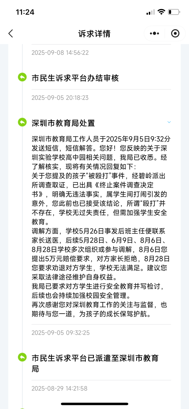 9 月 5 日,教育局回应称已要求学校加强安全教育并督促涉事学生作出检讨,但家长对这一处置结果表示不认可。“事情已经过去四个多月,孩子的身心创伤和家庭的经济压力都在持续,” 家长表示,核心诉求是希望教育局和校方牵头,推动涉事双方就赔偿事宜达成明确协议,并厘清校园安全管理中的责任边界。