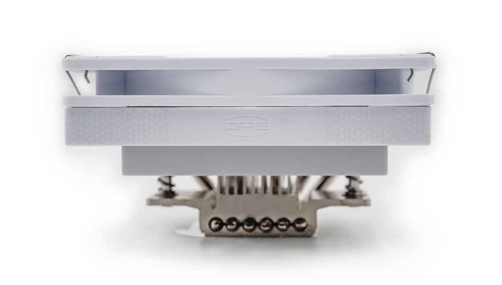 下压式散热器虽然在鳍片规模上比不了塔式,而且高度只有67mm,不过超频三RC600-67的6热管和全回流焊以及47片0.4mm加厚镀镍铝制散热鳍片可以弥补差距。
