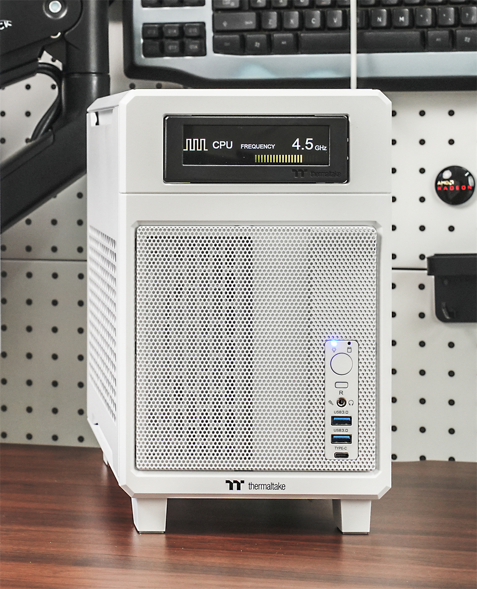 前面板有大面积的MSEH网设计,上部挡板可以替换成额外购买的LCD屏幕,内侧能够安装两个2.5英寸硬盘。