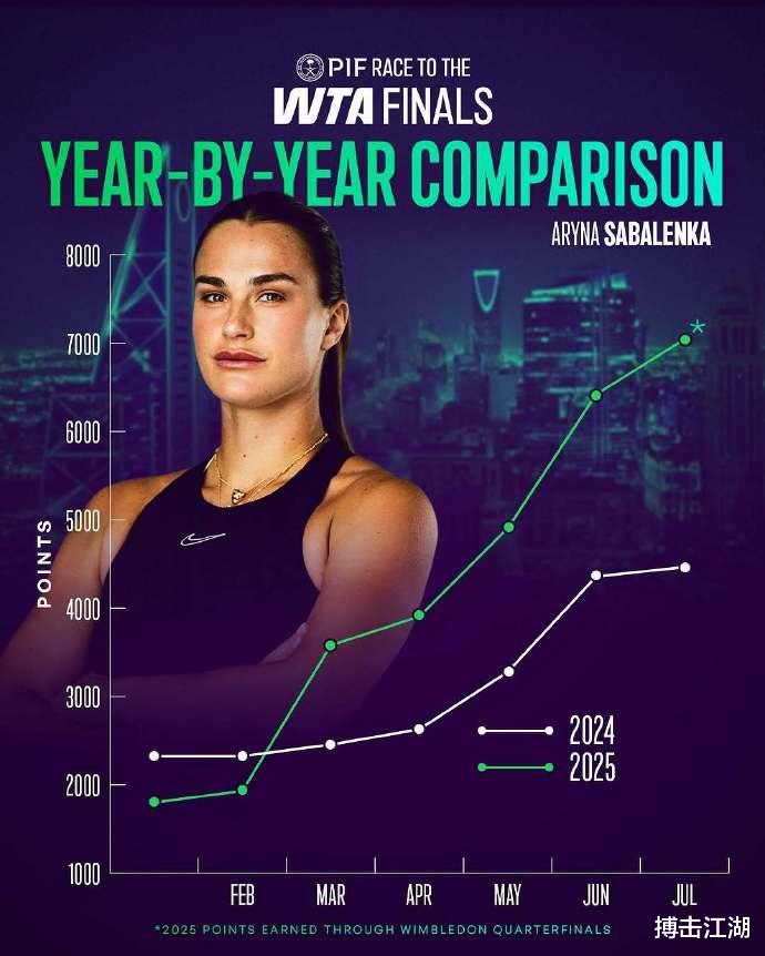 萨巴伦卡也成为第一位入围利雅得WTA年终总决赛的球员。她在PIF迈向总决赛积分榜上稳居榜首,她也早早拿到了总决赛入场券。