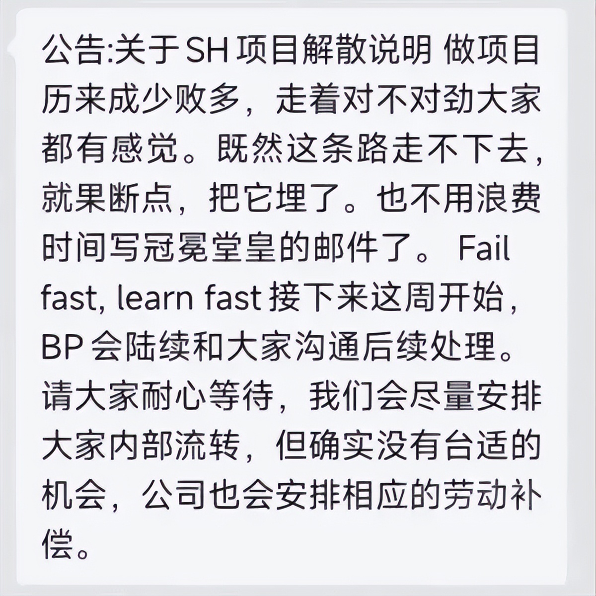 看到这个代号,大家应该能想起,PJSH并没有活着走到大众视野中。它第一次广泛被人看见,已经是2022年宣告项目被砍的「死讯」了。当时,蔡浩宇在内部群中表示:「fail fast, learn fast」。