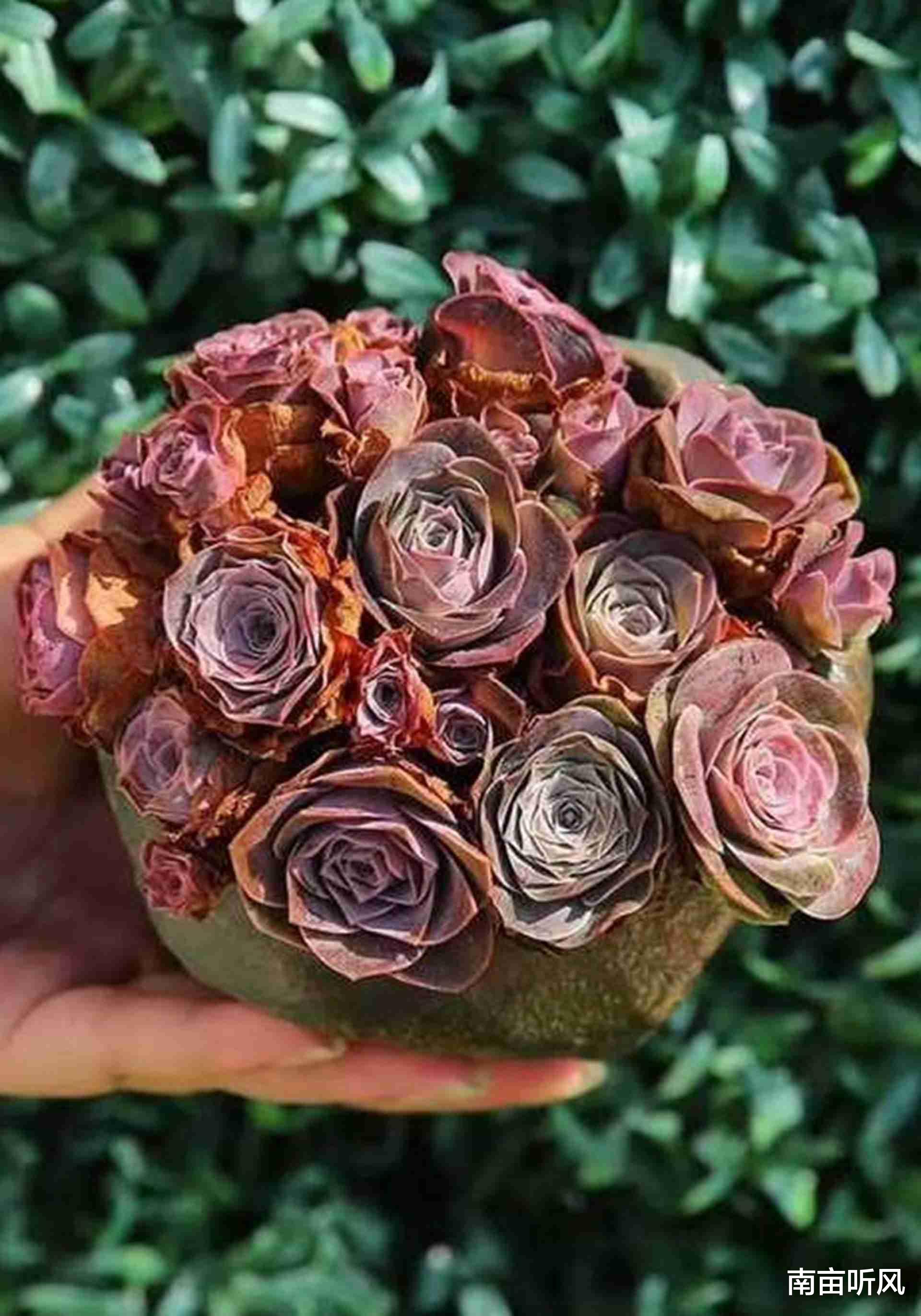 我先给大家说说山地玫瑰的一些特点。它的叶子层层叠叠的,像玫瑰的花瓣一样包裹着中心,颜色特别好看,会根据环境和养护的情况有所不同,有的时候是淡淡的蓝绿色,有时候又会带上点紫色。而且啊,它比较耐旱。这一点在干燥的西北地区就很明显,像新疆有些地方,气候比较干旱,山地玫瑰在户外都能长得挺好。