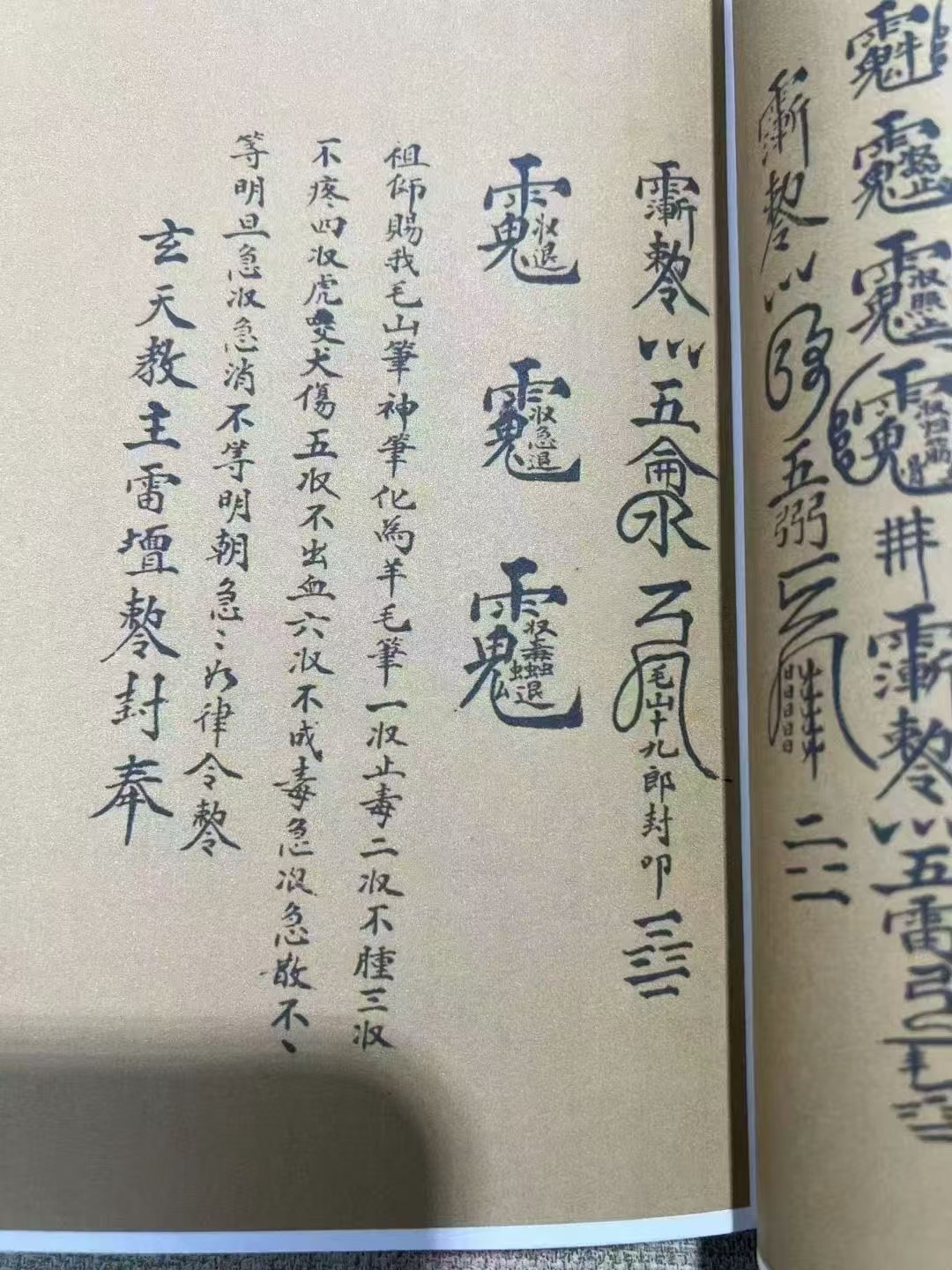 更令人惊叹的是,书中对 “九龙化骨水符法” 的记载尤为完整。这类道医特有的符法技艺,在普通典籍中往往只存零星记载,而这部秘本不仅收录了不同场景下(如鱼骨卡喉、异物入喉等)的九龙化骨水符法,还附有符图绘制步骤、念咒要领与使用禁忌,让读者能清晰了解道医 “符法 + 草药” 结合的诊疗逻辑。此外,“五郎咒” 等道医常用咒术也被完整收录,这些咒术并非虚无缥缈的传说,而是与具体病症治疗相结合,体现了梅山道医 “身心同调” 的独特理念。