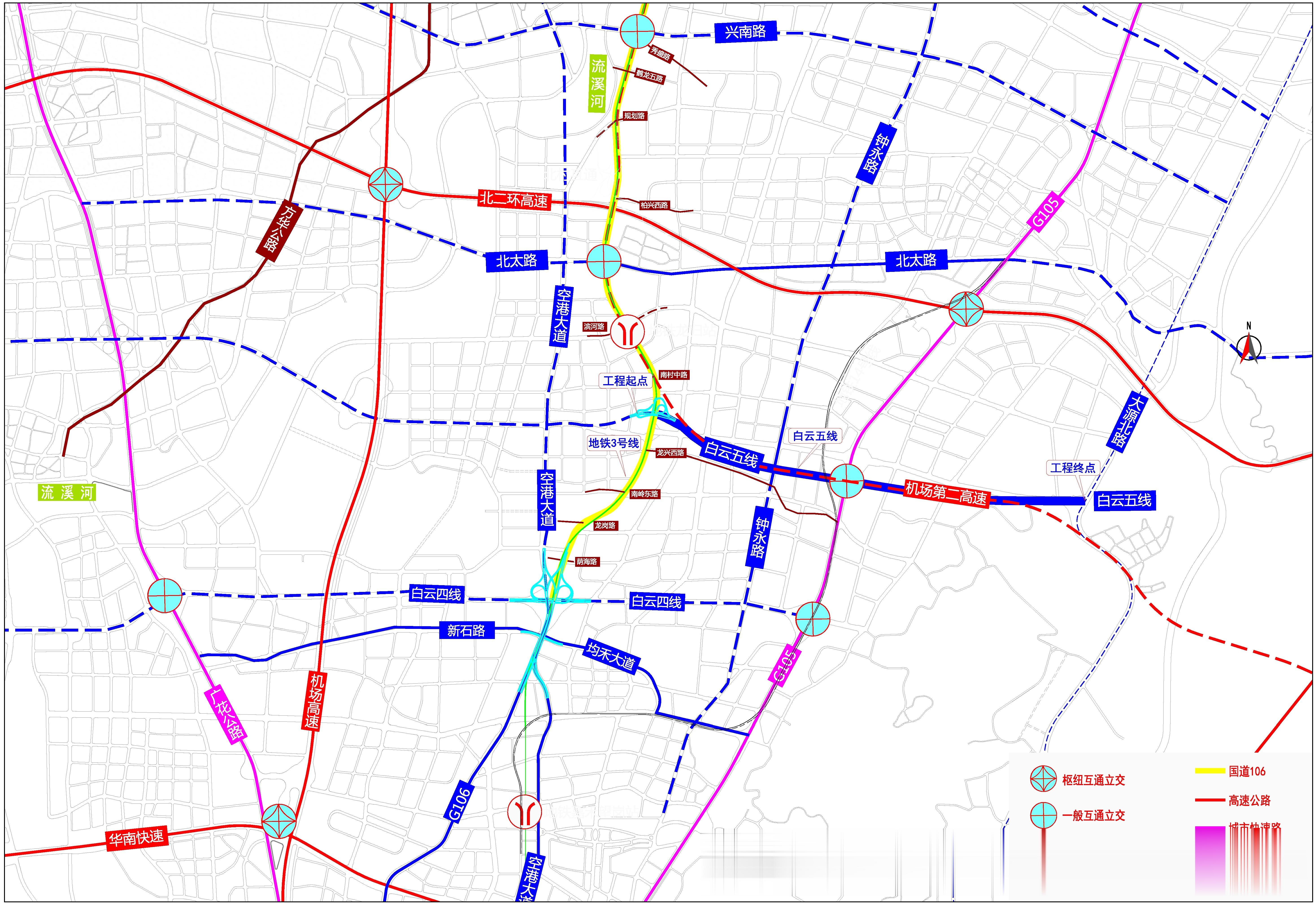 提升综合交通枢纽能级。加快推动白云机场T3高铁站建设实施,研究T3航站楼联系卫星厅、交通枢纽中心的捷运系统建设。进一步提升旅客货邮吞吐量,推动南广、贵广高铁线路接入广州白云站。推进广州国际港建设华南地区中欧班列集结中心核心枢纽,加快广州国际港站二期及三期第三线束开工建设,增开国际、国内班列线路,做强物流品牌,提升铁港货运枢纽能级。力争完成广州国际港配套码头(白云港)涉及水源保护区调整工作,完善片区水铁联运基础能力。推动棠颂路南延段和棠瑞四街西延段“微细血管”路网开工建设,加快潭涌路东段(棠新路—机场路)及其下穿机场路建成投用,构建白云机场六横七纵高速路网,加快推动地铁12号线中段、广花城际、芳白城际、钟港大道、广河高铁建设,持续完善枢纽之间互联互通。