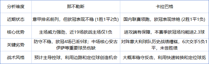 · 战术风格:预计那不勒斯将主导控球,并利用两个边路发起攻势。而卡拉巴格极有可能采取稳守反击的策略,利用快速转换寻找得分机会。