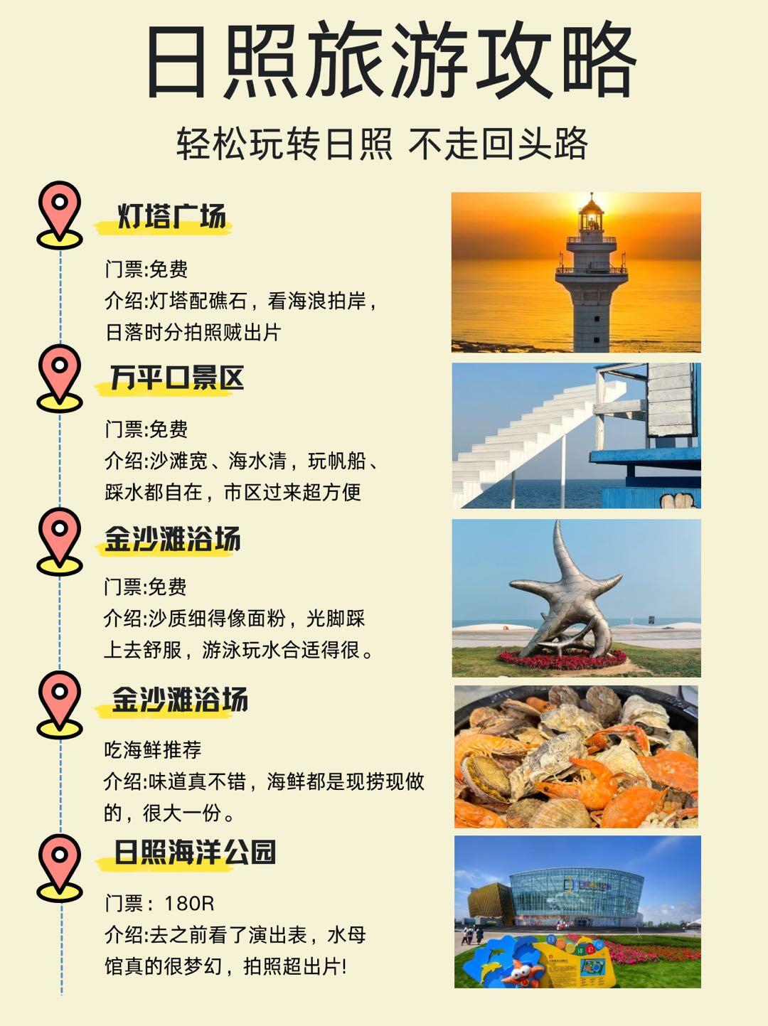 刚从日照晒完太阳、吃够海鲜回来,这就把热乎乎的三日游攻略整理好!不管你是想踩沙滩、赶海拾贝,还是狂炫海鲜、看日出日落,照着这份攻路玩,保准不绕路,把日照的精华全玩到,还能省下不少钱!