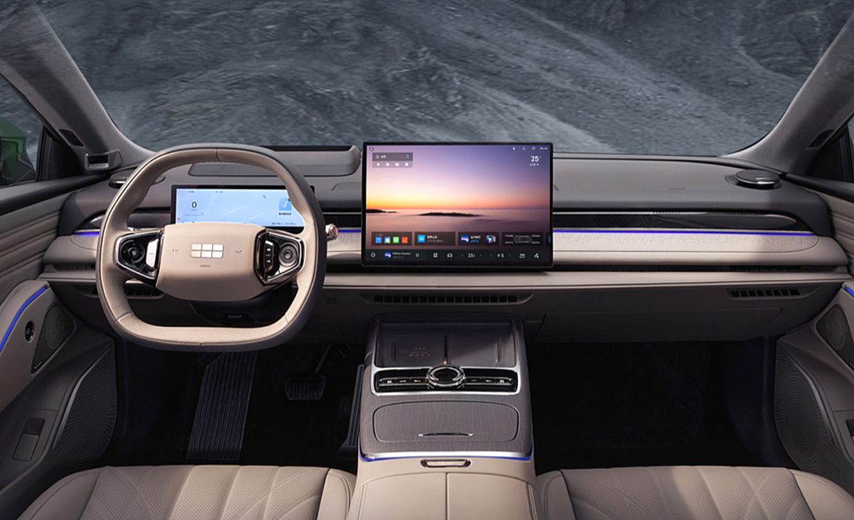 内饰方面,银河星耀8采用环抱式布局,中控搭载悬浮式15.4英寸中控屏、10.25英寸仪表盘和AR-HUD组成的三屏联动系统。车内软包材质覆盖率高达85%,仿麂皮面料触感细腻。门板与中控台融入“荷塘涟漪”纹理装饰,增添了内饰的精致感。