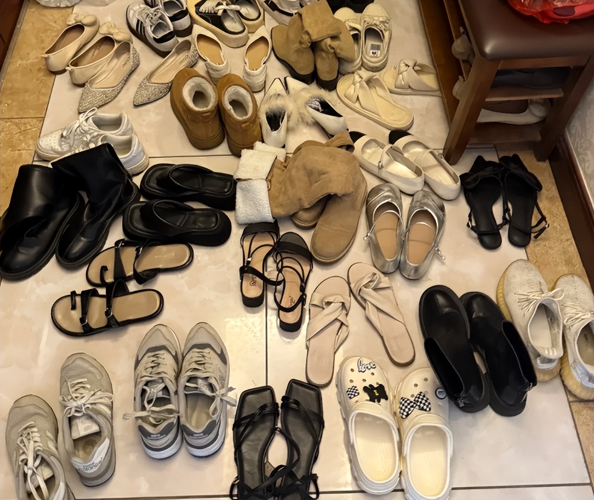一方面扔掉不穿的鞋子,一方面又不停的买回新鞋子,鞋柜里面的鞋子能不多吗!
