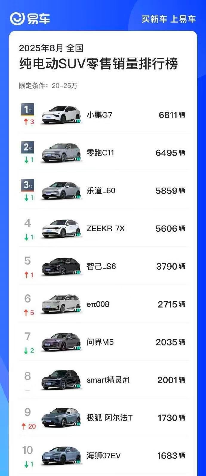 小鹏G7能成为8月20-25万级纯电SUV销量第一不是没有原因的,大家最关注的舒适和空间它都给到了,并且还有不少“同级唯一”的优势,可以说,小鹏G7这台车在同级内难寻对手。