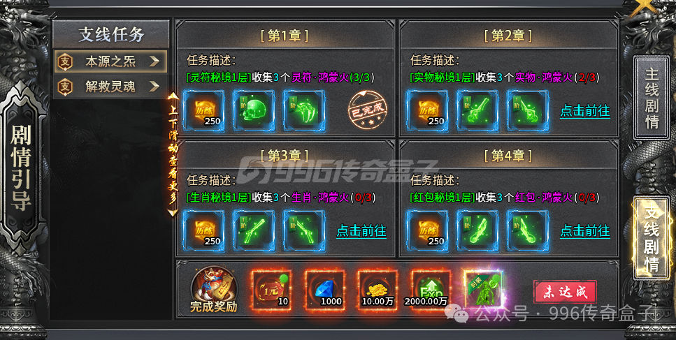 上线跟着主线任务走就行,除了主线还有支线任务,支线任务完成会给时装魂骨,一整套魂骨时装凑齐额外属性相加!