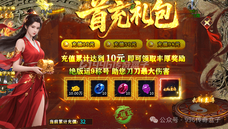 首充是可以白嫖的,完成主线任务和开服好礼中的刷怪任务会给累充红包。可以用来领取首充和累充回馈!赞助靠刷怪就能白嫖,散人福利中可以消耗灵符或元宝购买礼包,灵符和元宝刷怪都能获得!有一个六元秒杀礼包,给永久范围群体攻击属性的神兵,这个挺有用的,主要是上线会给限时试用,由奢入俭难,你们懂的!