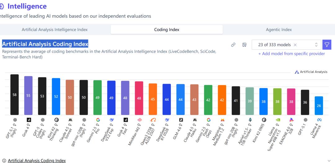来源:https://artificialanalysis.ai/?intelligence=coding-indexintelligence-category=open-weights-vs-proprietary