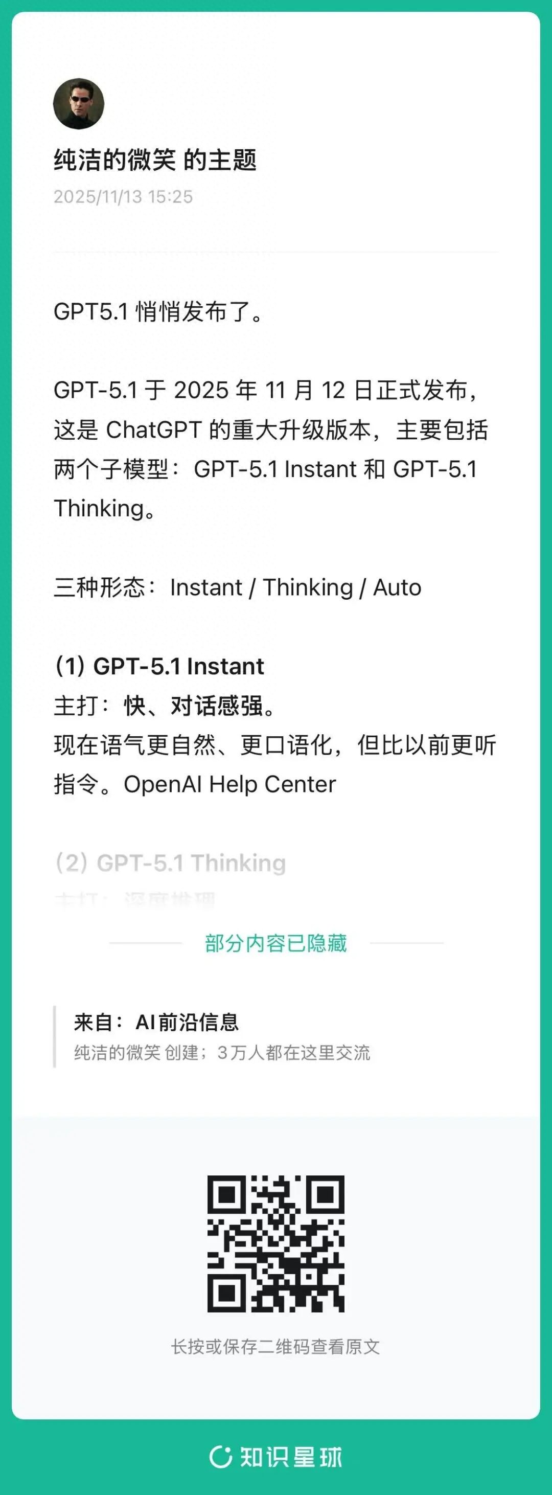 前两天,ChatGPT 5.1 发布,当时我在星球里也跟大家做了分享,只是当时忘了强调一个点:ChatGPT 5.1 的编程能力,又往前跨了一大步。