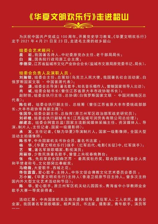 《华夏文明欢乐行》将于4月21日至23日,走进毛主席的故乡韶山活动