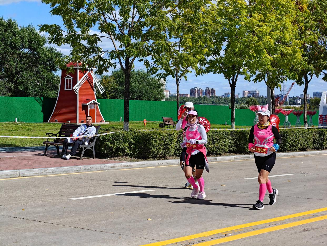 ▲路上碰到跑半马的“哪吒三姐妹”,一路上没怎么停,平时练得应该还是可以的。