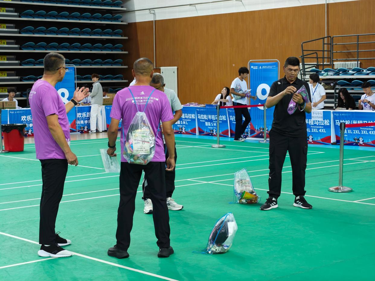 ▲物资在体育场中心领取,如果有需要的话,还可以请摄影师帮自己拍大背景照片。不过我是马拉松老油条了,拍照这种事于我如浮云,也就没去拍。