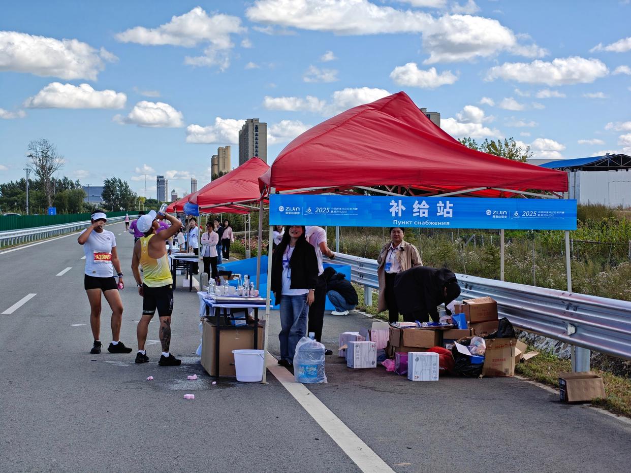 ▲不过补给站来了,我又想吃点喝点了。沙棘汁还挺好喝,黏黏稠稠的。小赛事就是好啊,我要是大胃王,我都能喝个肚圆再走。除了沙棘汁,还有蓝莓汁呢,这个补给品种的丰富程度,真的是我44次全马参赛经历里仅见。