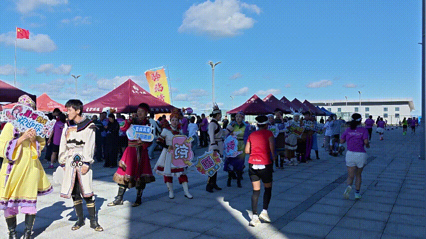 ▲早上8点才起跑,但我还是像以前的比赛日一样,五点多就起了。早上也没什么胃口,吃了点面包,走路一两公里去起点的中国黑河瑷珲腾冲中国人口地理分界线主题公园。