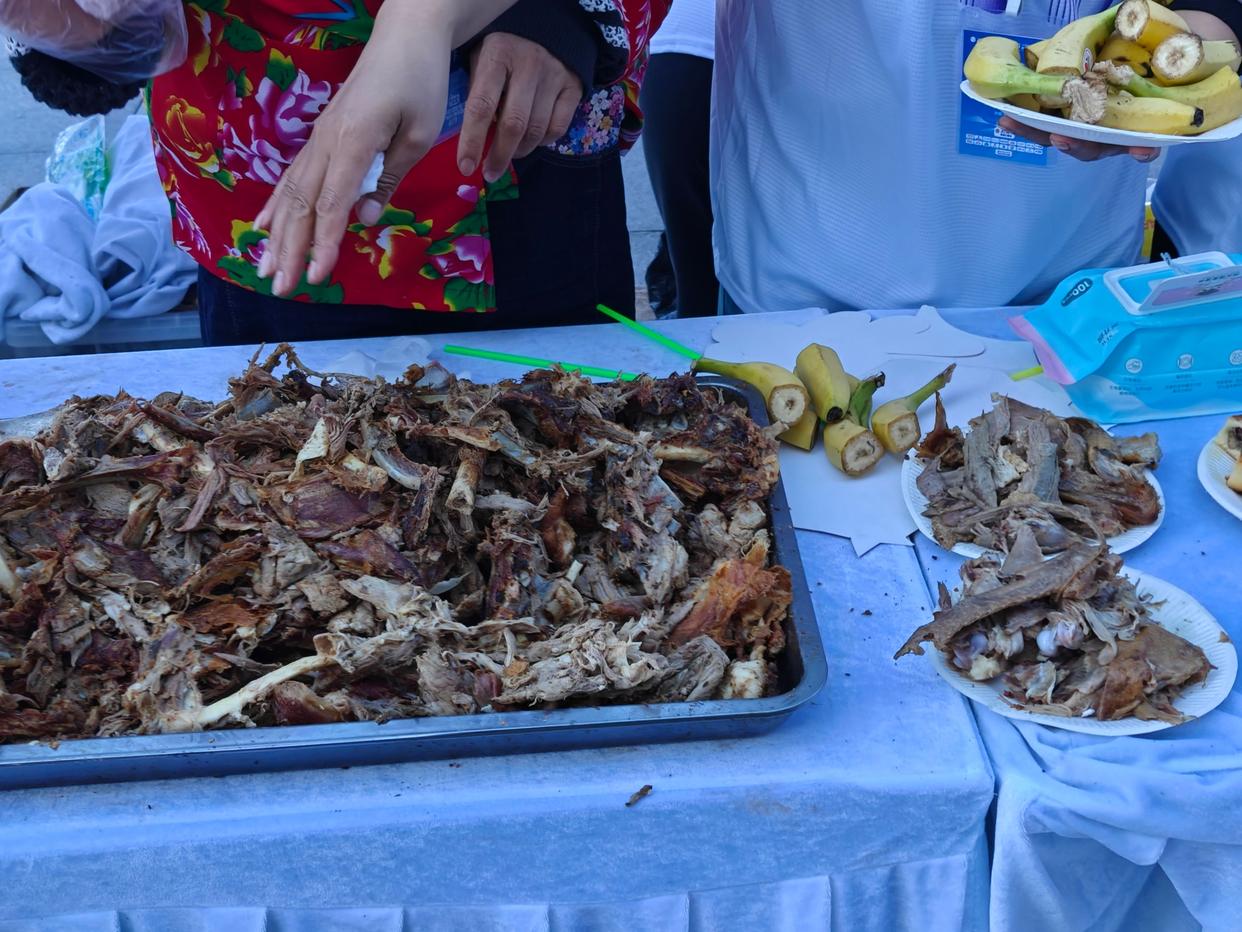 ▲烤鹅大串、朝鲜族大拌饭,看得我嘴角的口水不争气地流下来。但是!!!完全吃不过来好吧~由于这流水席的关系,在这里我直接停留了2分钟之久!!!这是我跑马拉松以来,见过最豪华的赛道补给了!!!
