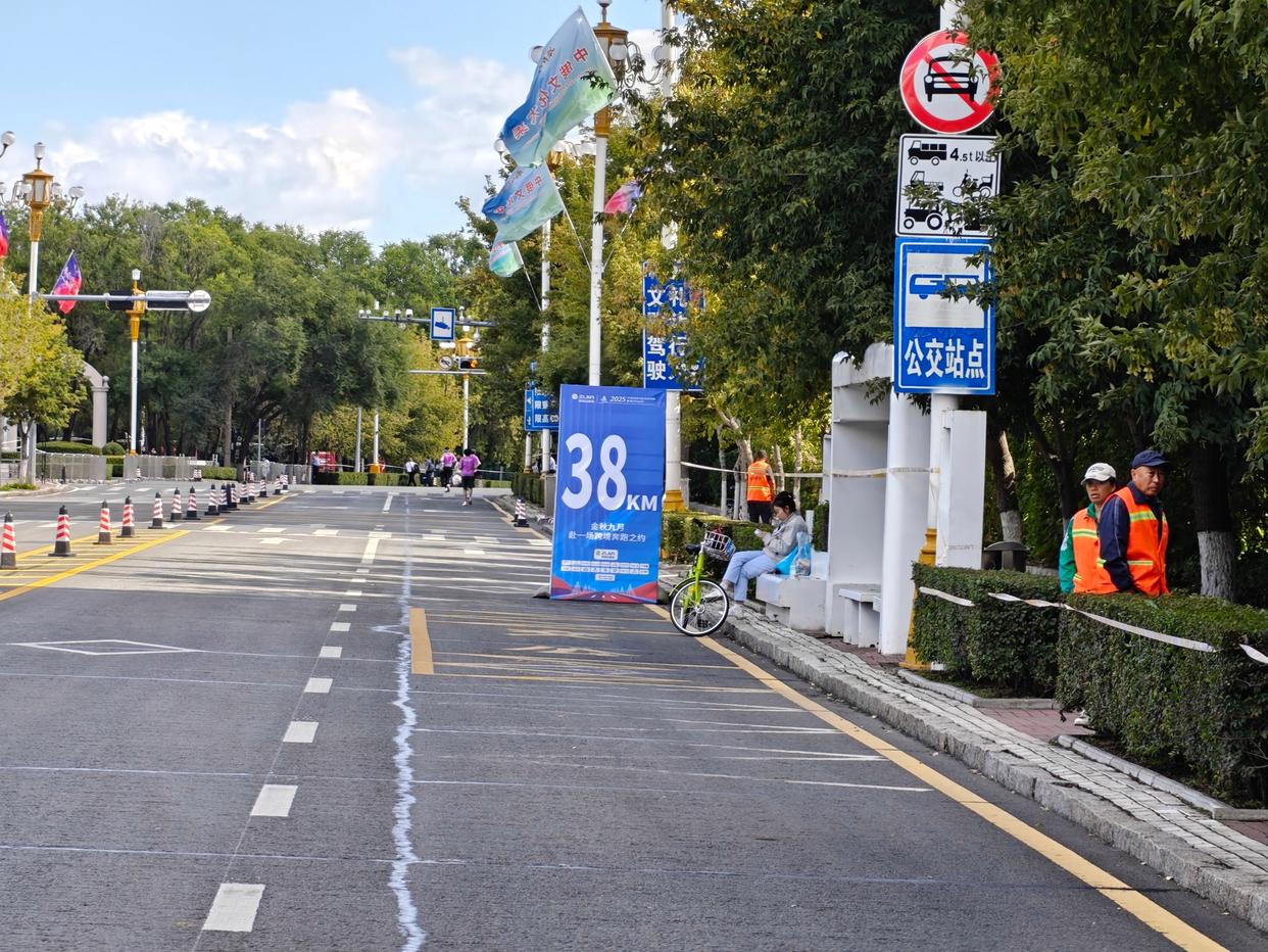 ▲对向赛道已经能看到返程选手,不过我拍到的还不是第一的选手。倒是很羡慕人家已经跑到39公里了。