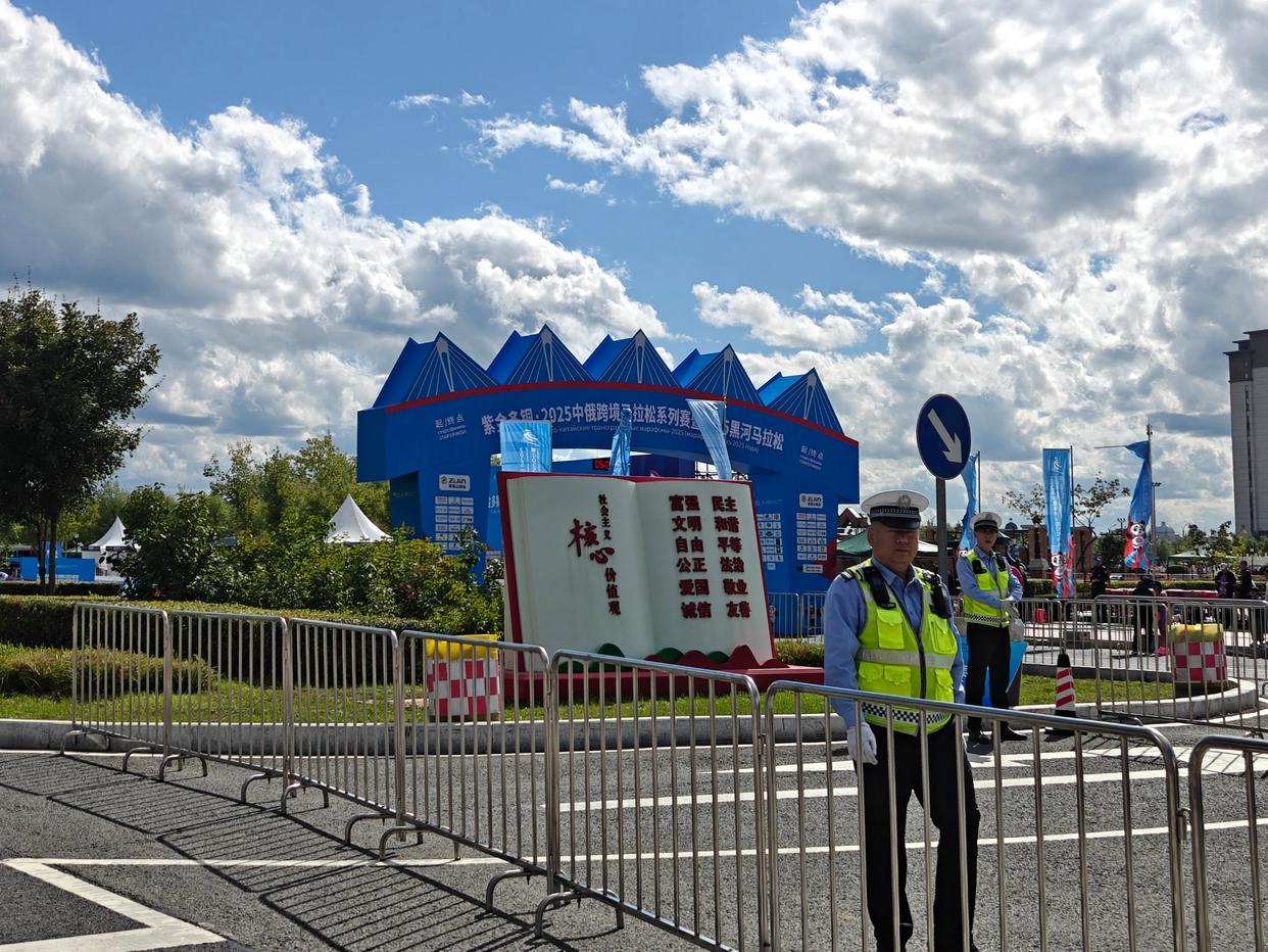 跑过“流水席”,就是往黑龙江大桥去了,在桥上会穿过中俄边境,我们这边有警察叔叔执勤,对面会有俄罗斯大兵持枪站岗,体验很是特别。不过因为边境涉密,所以是不让拍照的,这里也就没有做图片展示。