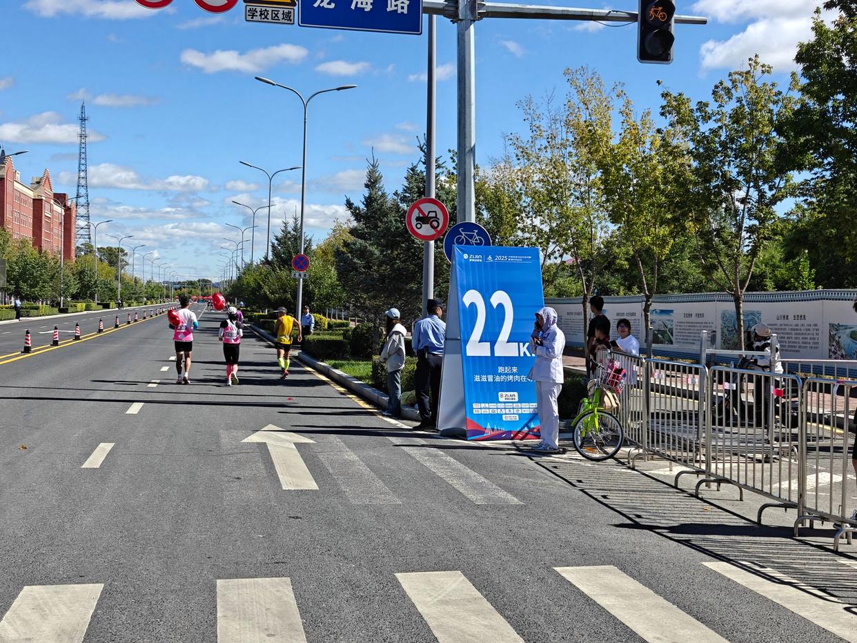 ▲2小时7分,20公里,被“哪吒三姐妹”重新追到,前面就是补给站了,我是不着急的,不过每次看到半马选手快要冲线,就很羡慕他们只剩1公里了,而我还剩一半呢~